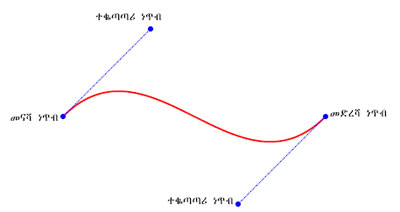 - ተቈጣጣሪ ነጥቦች (300,150) እና (400,350) ናቸው።
